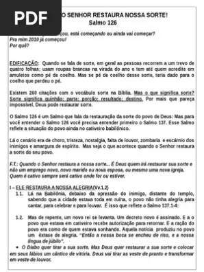 Esboço Do Salmo 126 Grátis. Estudo sobre o salmo 126. O salmo 126 traz o louvor a deus pela restauração que ele fez tirando o povo de israel do cativeiro da babilônia, mas também que continua a transformar seu povo a cada dia.