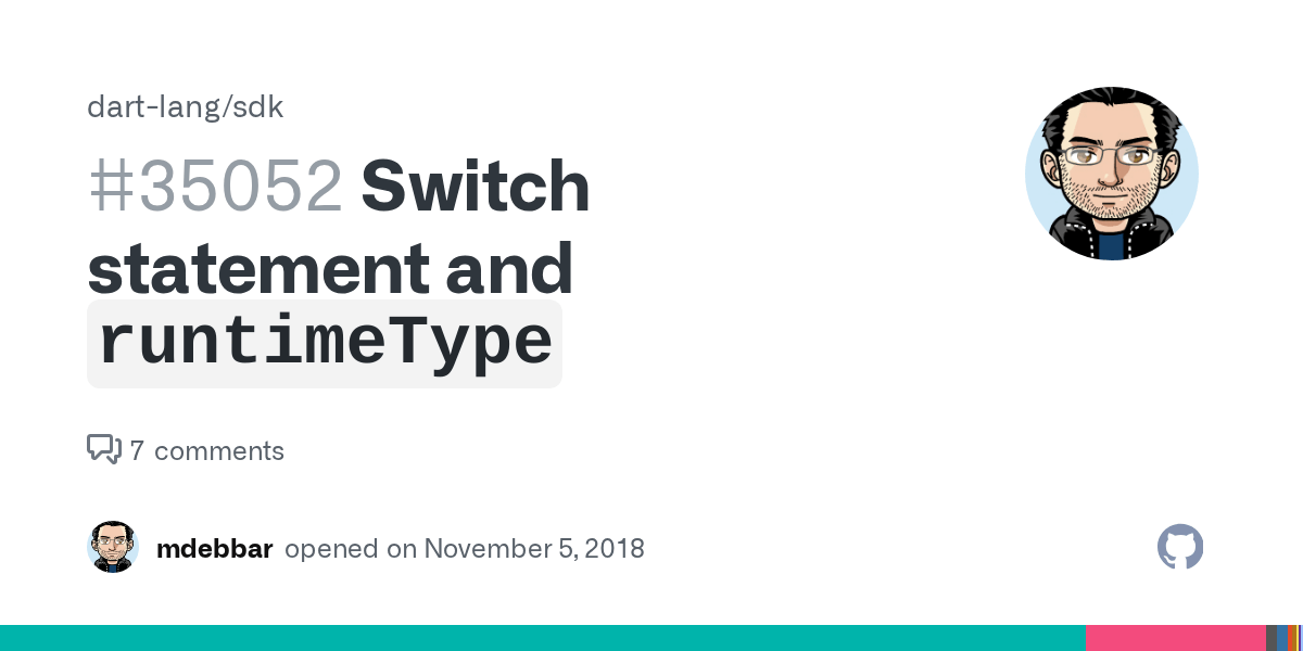 _debugsize vs size) but usually we actually want runtimetype equality. There are some specific cases where is is the right answer because we want the liskov substitution principle to apply (e.g. 19.11.2019 · dart objects have runtimetype property which returns type. } it will print : Unlike is , it will only return true if compared to an exectly same type, which means comparing it with its super class will return false. If (foo is foo) { print(it's a foo!); _debugsize vs size) but usually we actually want runtimetype equality.. 14.06.2016 · incidentally, in flutter's codebase we sometimes check for type equality using is and sometimes using runtimetype.